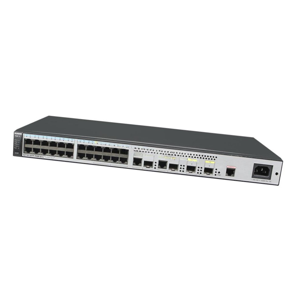 The S2720-28TP-PWR-EI-L Huawei is a reliable Layer 2 intelligent Ethernet switch with a built-in power module and PoE/PoE+ capabilities, designed for enterprise access, branch networks, and surveillance deployments. It supports up to 24 PoE+ ports, advanced Layer 2 switching features, and seamless integration with Huawei’s NMS platforms for centralized management and automation.